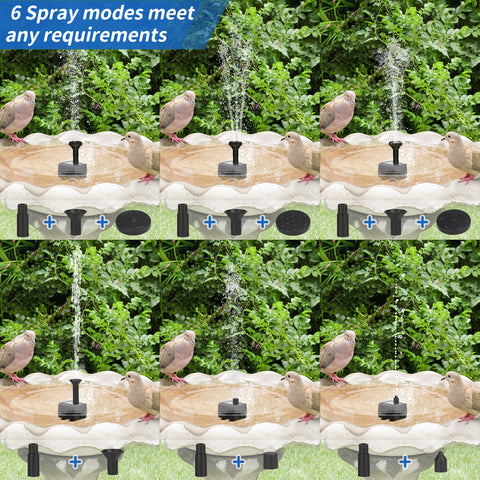⛲ 【4 spray effects】 Choose your preferred nozzle option and place the nozzle in the bird tank. By combining or replacing the nozzle, 4 different spray effects can be achieved. The height can be adjusted by replacing the nozzle to avoid splashing out of the pool. You can easily replace the nozzle.
