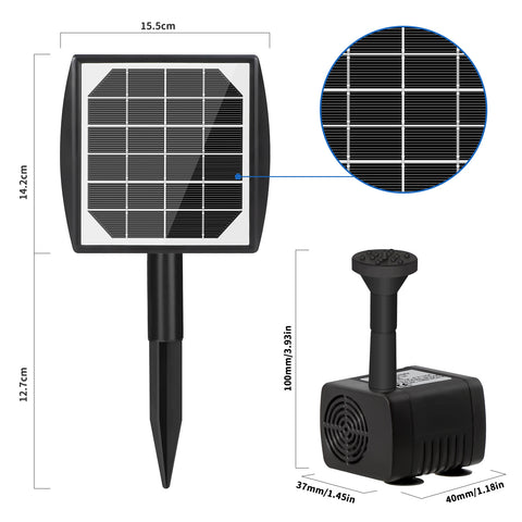 ⛲ 【Easy to use and perfect match】 Just put the pump in the water, put the solar panel on the direct sunlight and it will work automatically. The nozzle is equipped with foam cotton, which allows the pump to float on the water surface and has the filter function. Built-in brushless motor with longer life and lower consumption.